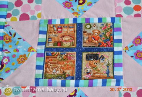 Да, я сделала это!))) Давно мечтала в детскую покрывало в тех же тонах, в магазине ничего интересного не нашла, еще и хотелось из хлопка, чтобы использовать как летнее одеяльце.