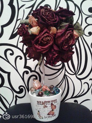 Муж подарил букет роз и после того как они завяли я им продлила жизнь))! 4 августа 2013 20:32 Сушеные розы и физалис. Комментарии Пожалуйста, будьте вежливы и доброжелательны к другим мамам и соблюдайте правила сообщества ПожаловатьсяСкопировать ссылку Алёна Дмитрий29 летВиктор23 годаВиктория14 летДарья11 месяцев Нижний Новгород оригинально)) ПожаловатьсяСкопировать ссылку DasaBala Вероника13 летКонстантин10 летКристина5 лет Киров классно))) ПожаловатьсяСкопировать ссылку Счастливая мамашка Матвей11 летСтепан12 лет Ясный Ну я не суеверная, просто очень люблю делать топиарии.А сделала из засушеных в вазе роз))! ПожаловатьсяСкопировать ссылку ♥♥რลრลωłζฉ• ∫lюЂนრỐґỐ•קσრลωłζน♥♥ Ромашечка13 летВовочка8 лет Кострома ух ты как здорово!!! ПожаловатьсяСкопировать ссылку Анна Дарья21 годВарвара13 лет Москва Как здорово! Вы просто из засушили естественным образом в вазе? ПожаловатьсяСкопировать ссылку ВИКТОРИЯ Андрей17 лет мёртвые цветы дома не держат...ПожаловатьсяСкопировать ссылку Злыдня Роднуля19 лет Москва ага..., я тоже против ПожаловатьсяСкопировать ссылку Мамавкубе Царь12 летЦаревич8 летКарамелька1 год 9 месяцев Москва Красиво!!! ПожаловатьсяСкопировать ссылку Лариса Котеночек12 летЗайчонок10 лет Омск очень красиво! Предыдущая статьяПоследние творения))!Следующая статья♡♡Розовая мечта♡♡》!!)))) Топиарий для девОЧки)))Актуальные постыребенок родился 15 16 недельв какие игры играть с 11 месячным ребенком