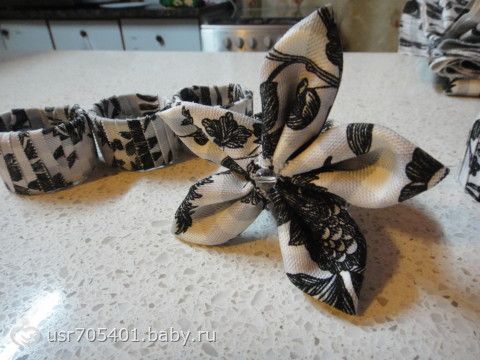 материал не знаю как называется, просто пошла купила какой понравился, материал плотный на ощупь, а кольца… очень просто взяла картон который остался после бумажных полотенец, порезала, обмотала лентой из материала, сшила, и сделала цветочек из материала (все делала вручную, т.к машинке нет), но тоже получилось не плохо по моему :)