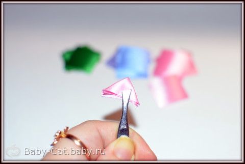 Полученный лепесток выворачиваем оплавленной стороной во внутрь.