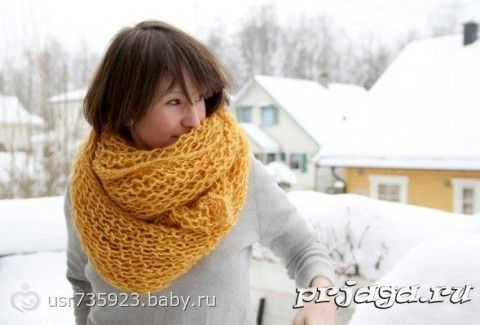 мне кажется, если сделать накид, как пишет Неlеn, то дырка получится… в описание пишут ПРОТЯЖКА… начинается с 3 петелек и прибавляете потом в каждом ряду… я так понимаю, тут эффект в пряже и в том как девушка намотала на себя все это вязание