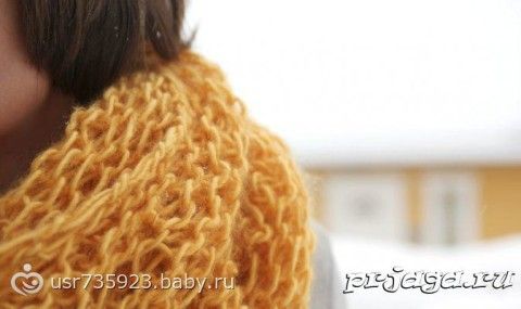 Эффект этого платка за счет того что спицы очень большого размера. Вывязывать из протяжки, значит из нити, которая между петель находится