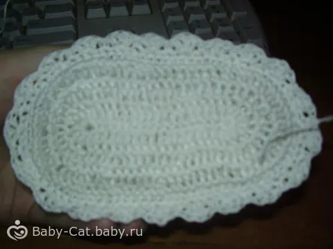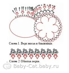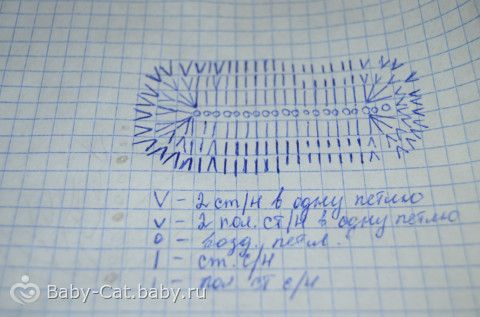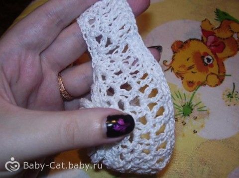 11р. Боковинки-2ст с\2н в арку из 2 в.п. 1 ст. с\2н в промежуток между V-столбиками. Носок-2 ст. б\н вместе в арку из 2 в.п., и ст. б\н в промежуток между V-столбиками.
