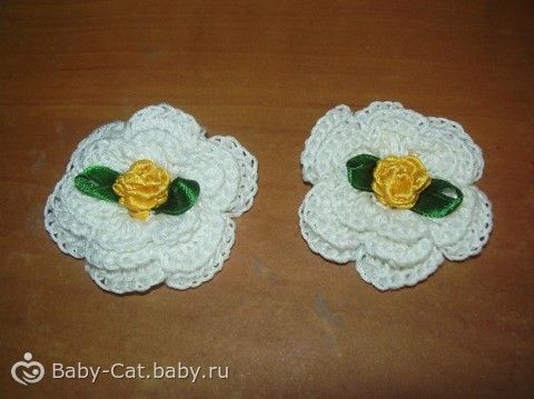 (я их сразу украсила пришила в центр цветка розочку из атласных лент)