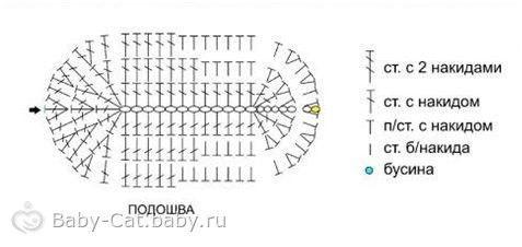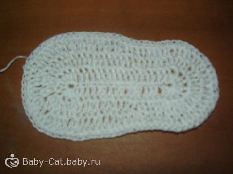 Вяжем подошву 2 шт. по любой понравившейся схеме можно взять эту (но если что, то надо будет до вязать ряд или два, не забывая про прибавления)