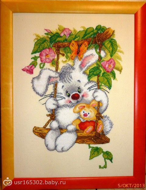 Я вообще быстро вышиваю. Просто несколько начатых работ, по настроению — сегодня одну вышиваю, завтра могу другую. Так что сколько именно этого зайца вышивала — не скажу.