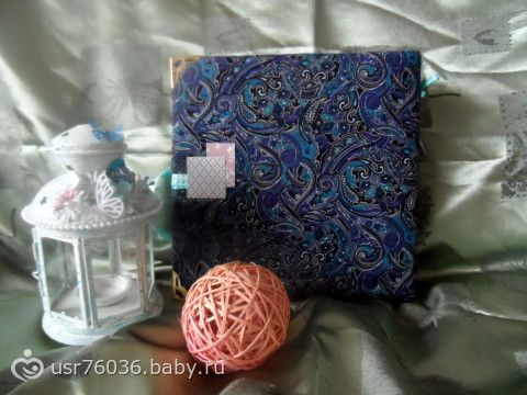 Альбом формат 28*28, обложка мягкая-проложена синтепоном, ткань-корейский хлопок. Бумага Тильда «Сине-зеленый лес»