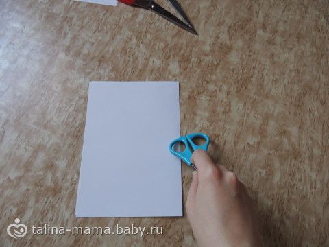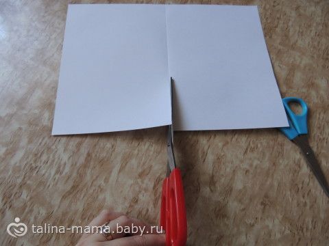 Разрезаем большими ножницами по линии сгиба. Маленькие нам не подходят — чем меньше полотно ножниц — тем больше неровностей будет при резке.