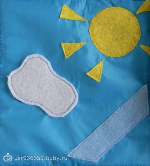 Небо. Солнце и облако на липучках, можно менять местами. Солнце набито синтепоном, облако шелестит