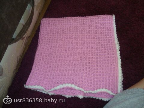 Пледик симпатичненький-умничка!!! Не отпаривай не в коем случае-пропадёт рельефность и изделие весь вид потеряет, вообще вязанные крючком вещи отпаривать не желательно-только если необходимость есть, постирать можно, если в процессе испачкала.
