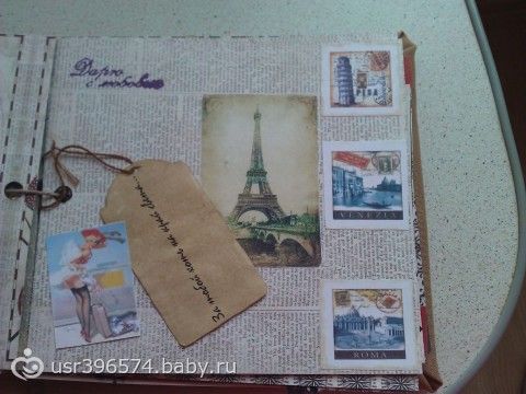 Фотки не получилось, т.к книжка в стиле винтаж, пришлось бы помимо бумаги еще и фото состаривать, побоялась испортить) а так я тоже думала так сделать