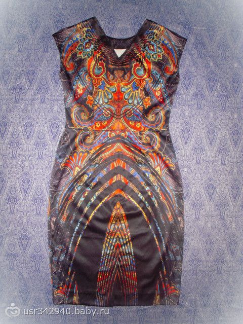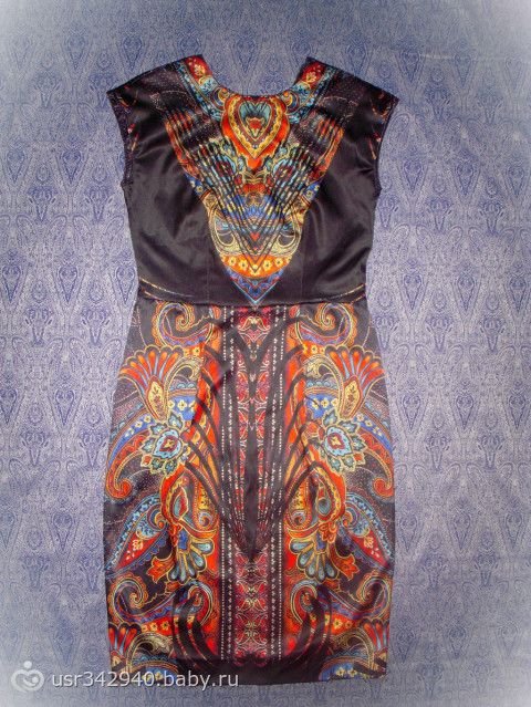 В общем сшила я себе платье. Сатин. Подгонять рисунок было несложно, а прилично сфотографировать — невыполнимо, получились заломы от бликующей ткани. Очень яркое, древнеегипетское что-то ))))