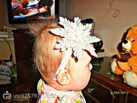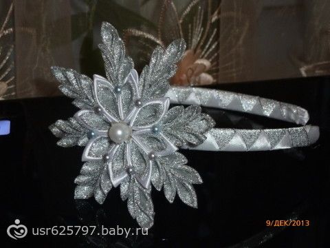 Сделала вот такой ободок «Снежинку» девочке в садик на утренник, мне кажется не плохо получился!