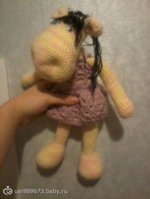 Так как я родилась в год лошади, то решила попробовать связать эту лошадку))) сначала вообще не получлось, а потом сообразила и пошло хорошо)))))) прошу сильно не критиковать! это первое мое творение такого рода! мне она очень нравиться! (еще волос доделаю) и фото с телефона к сожалению(((