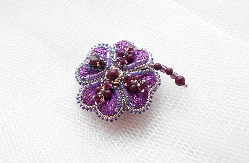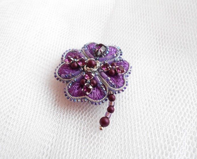 Фото, к сожалению, не передает ни блеска ниточек, ни сияния кристалика и шатонов Сваровски и даже жемчуг Сваровски немного «потерялся». Но я со всей ответственностью заявляю, что брошечка невероятно сияющая и переливающаяся.
