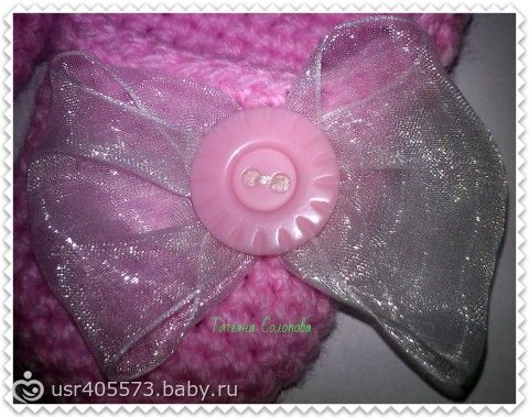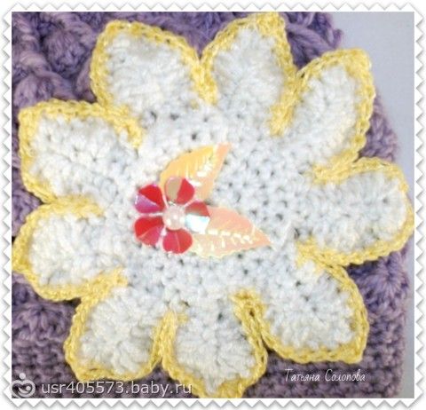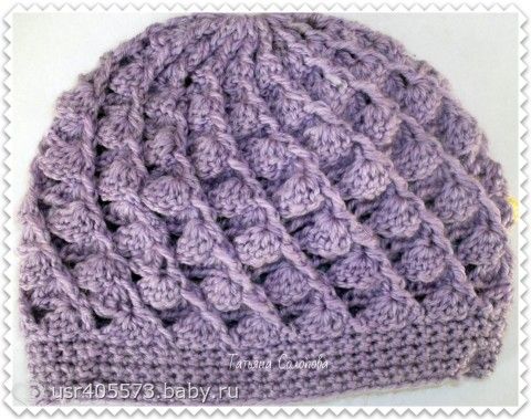 Я сначала хотела цветок, а свекровь примерила на себя и говорит, что не нужен, я вообще просто так вязала, из остатков, нитки красно бардового цвета, поэтому шапочка итак броская получилась! А вообще я где то в инете видела такой вариант бусинками украшенный!