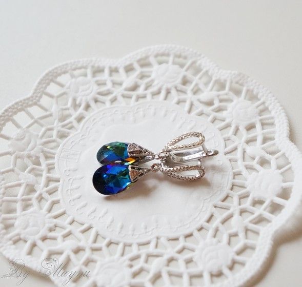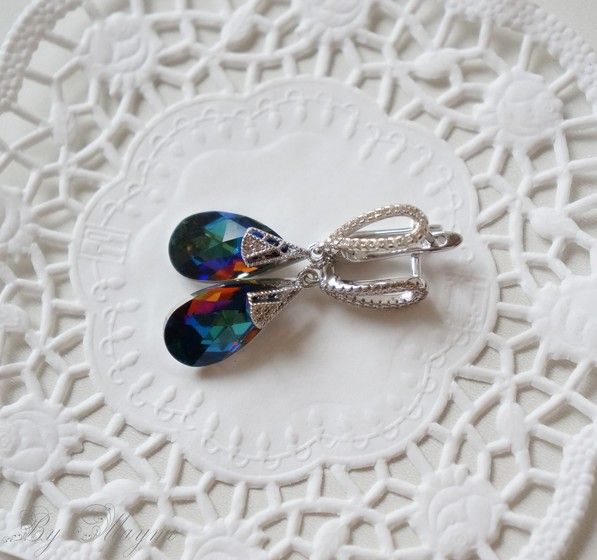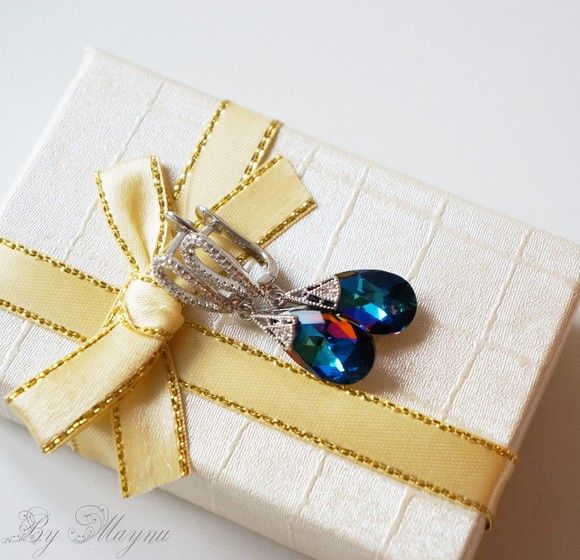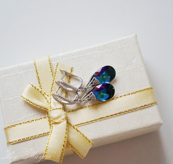 Нереальные серьги с кристаллами Swarovski Crystal Meridian Blue получились))) Основной цвет — синий) А дальше… Дальше — сказка! С всполохами красного заката, зеленых островов и мерцанием солнечных лучей)