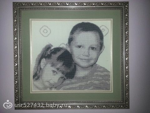 А это «проба пера», пыталась фото деток вышить… Вышло очень похоже, единственное, что сделала в черно-белых тонах, потому что так намного проще цвета подобрать