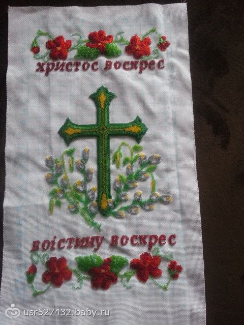 Две последние — пасхальные салфетки вышитые бисером, еще не приведены в нормальный вид (нужно постирать и погладить, а последнюю еще и обработать по краям)