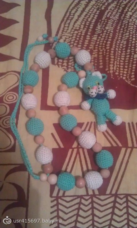 Заказала у Анны слингобусы. Это просто потрясающая штука! Ребёнку очень нравится грызть их. Одеваю когда ребёнку надоедат сидеть в эрго-рюкзаке (например при походе за продуктами по большому гипермаркету). Реально один раз спасли нас от коллективной истерики в машине: муж за рулём, а я сзади развлекаю детёнка — орала что ппц. Успокоилась и уснцула когда начала сосать игрушку на бусах.
