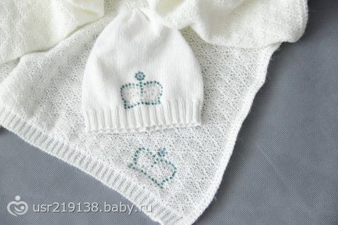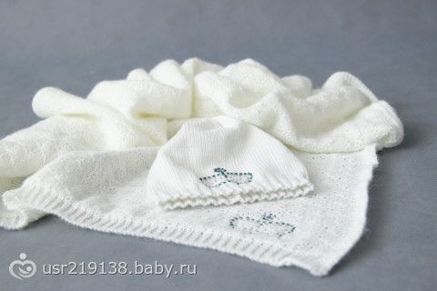 набор для новорожденного плед (75*75) и шапочка, плед связан из тонкой ниточки похож на оренбургский платок, только не такой пушистый, шапочка связана из нежного хлопка «софт» —