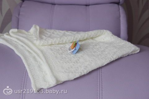 Нежный и мягкий плед. Отлично подойдет на выписку весеннего или летнего ребеночка. Связан на машине из нежной пряжи. После выписки пригодится в прохладную и ветреную погоду, чтобы укрыть малыша в коляске. Также можно использовать для первый фотосессий ребеночка. отличный подарк маме и малышу.Рисунок двусторонний.