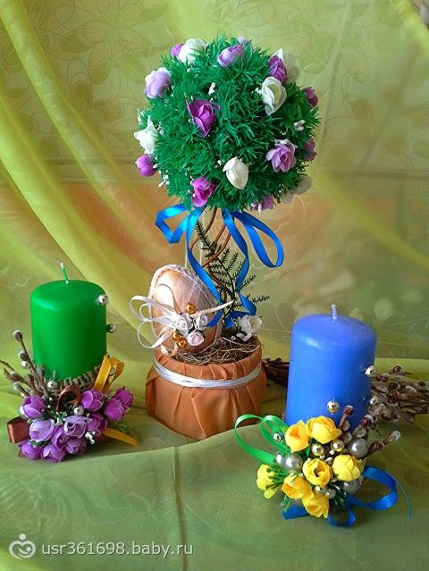 Топиарий с декорированым яйцом в основании, яйцо можно убрать оттуда.Свечи из искуственных цветов с настоящей вербой)!