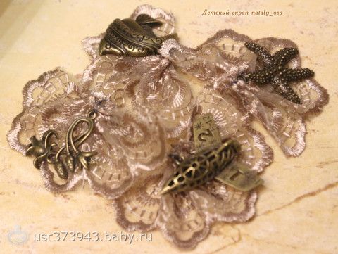Выбираем самые крупные подвески из имеющихся и подходящих по теме и пришиваем к кружевам в центр. Имейте в виду, весь декор ребенок неоднократно проверит на прочность, шейте крепко, клеевого пистолета не жалейте!
