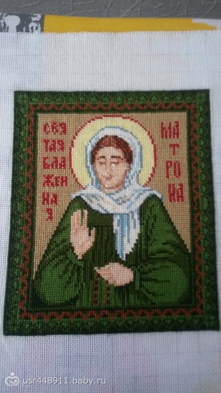 Вот и готова моя первая икона «Святая Блаженная Матрона» готова, вышила крестиком, хотела бисером, но побоялась, вот как получилось