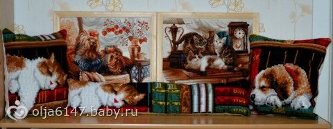 Наконец то я доделала свой проектик!Хотелось себе в комнату что-то уютное, что бы напоминало о книгах и отдавало кабинетной тематикой. И вот навышивался мой набор: две картины вышитые шерстью 30Х40, две подушки 40Х40 и один придверный валик 80Х20. Теперь моя душенька успокоилась и у меня рядом с книжным шкафчиком появилась вся эта прелесть! Всем спасибо кто заглянул
