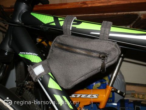 спасибо.выкройки все делаю на глаз и сразу на ткани… сумачку примерные размеры20-15 но под каждый велосипед подгонять надо.