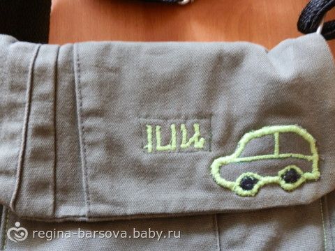 и сумочка для младшего.аппликацию и надпись делала сома.писали его имя на английском-это мой первый опыт вроде нормально получилось.