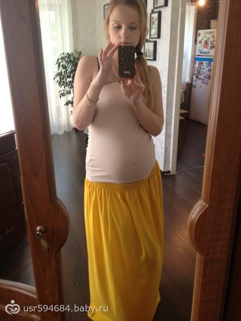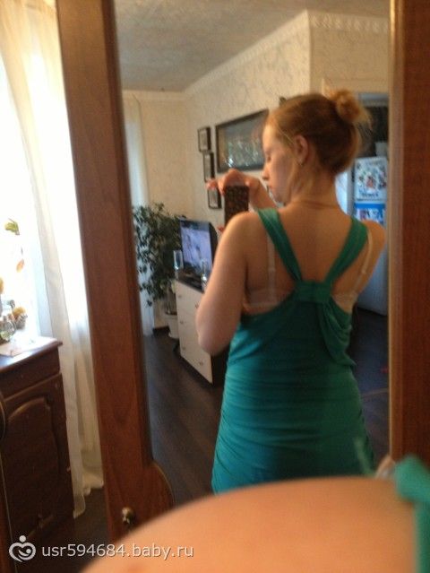 Еще такое трикотажное платье, со складочками. Ходить в нем в принципе можно и не беременной. Главное, что трикотаж мягкий сам по себе и нигде не тянет)