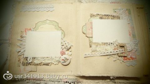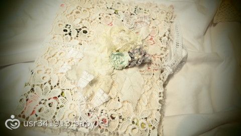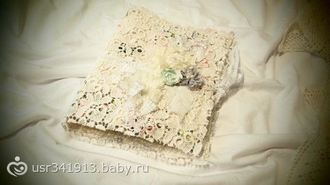 Очень давно хотела создать альбом из ткани, формат 16х21, 3 разворот, в нем можно разместить 6 фото.Этот кружевной нежнейший альбом идеален для ваших беременных фотографий или фото с крещения маленького чуда. Завязывается накружева, в альбоме много ткани, кружева и шитья. Мне кажется в этом шебби — буке хорошо будут смотреться черно — белые фото или сепия. Бук пока без хозяина. Спасибо за просмотр!