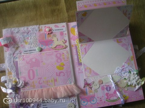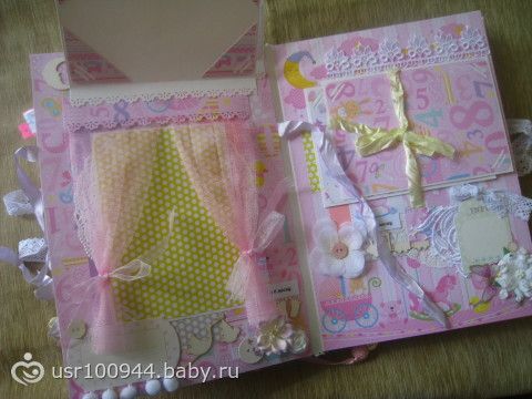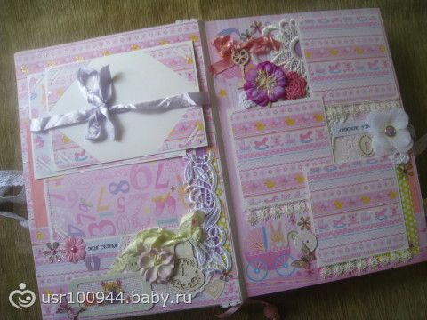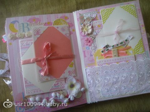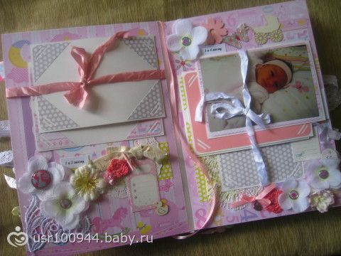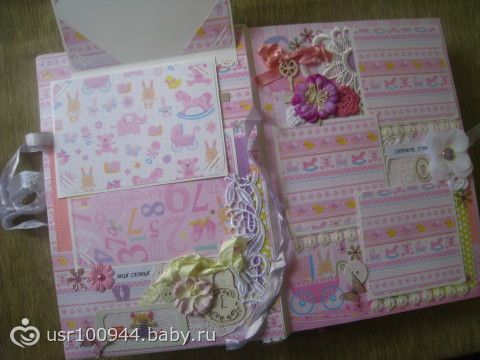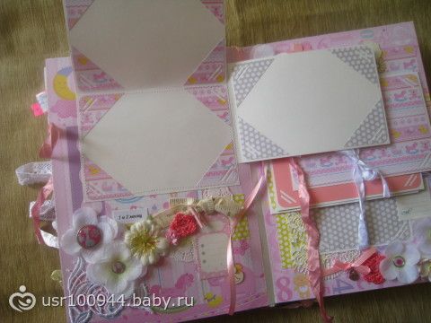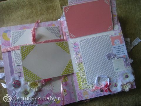 Симпатичный и нежненький. ) Я тоже немного увлекаюсь. ) А как вы клеите уголки, которые продырявили дыроколом под фото? Или они пришити?