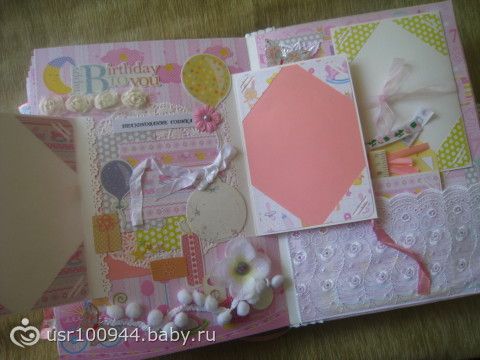 Всем привет! Хочу сегодня показать вам свой новый альбом, который делаладля замечательной девушки Евгении и ее малышки Лерочки. Альбом получился от рождения и до года включительно, также есть странички про ожидании малышки, рождение, семью. В альбоме есть текст (значение ее имени, ее талисманы). Обложка мягкая, ткань из коллекции Тильда. Получился очень объемный почти 6 см, формат 29 на 21 см, 6 разворотов, поместилось около 50 фото 10 на 15, красивый кружевной карман для дополнительных фото, таблички — ножка, ладошка, метрика. Спасибо всем за просмотр!