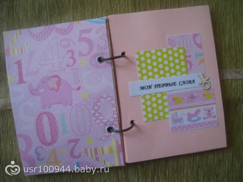В подарок к альбому сделала еще небольшой блокнотик для записей первых слов малышки!