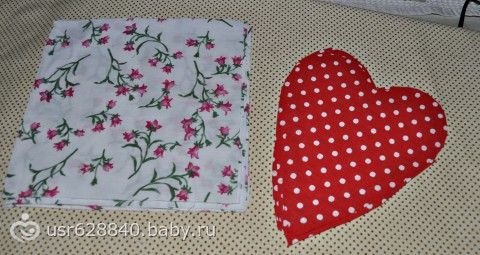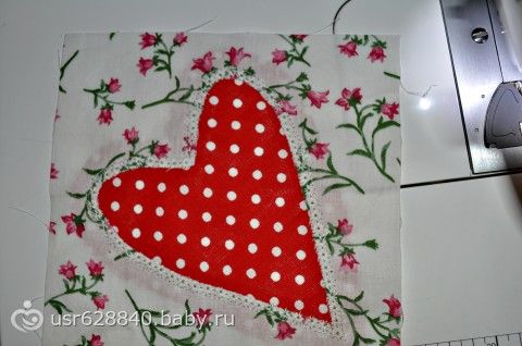 И что же нам осталось выкроить еще? Аппликацию ;). Я делала шаблон для сердечек сама. Это достаточно простая фигура. Но это не значит что нужно ограничиваться только ими ;))) Когда будете кроить аппликацию — не забывайте о припусках на швы. Они будут нужны практически для всех способов аппликации.