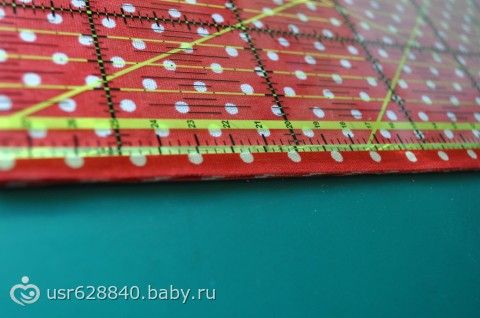 Итак, складываем ткань в четыре раза (я и восемь слоев спокойно режу) аккуратно совмещаем все края, прикладываем линейку, проводим ножом и получаем…