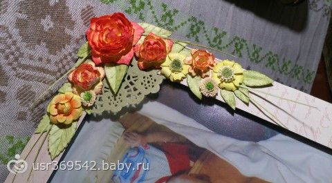 Пока жду материалы для альбома, руки чешутся и так хочется чего-нибудь натворить. ) Под руки попалась самая обычная рамка из IKEA. И вот что получилось. Все цветы делала сама, т.к. магазинные мне не нравятся, мне хотелось сделать нечто, похожее на настоящие, надеюсь получилось. Помогали мне в этом акварельная бумага и акварельные карандаши сына )))) Первый раз попробовала работать с текстурной пастой. Очень мне она понравилась. Буду изучать ее возможности. )