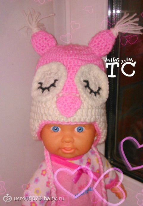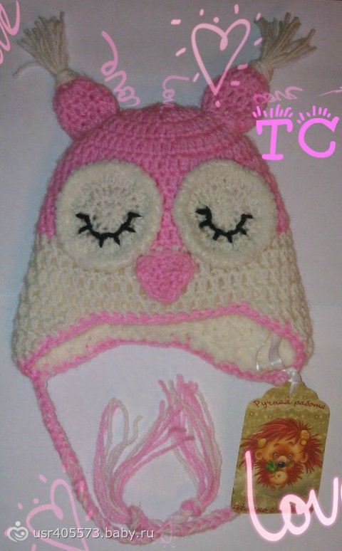 Связала подружке в подарок для доченькиШапочка «Спящая совушка»размер 36-40.от 0 до 3 мес.верх акрил+шерсть.подклад-плюшевая пряжа.