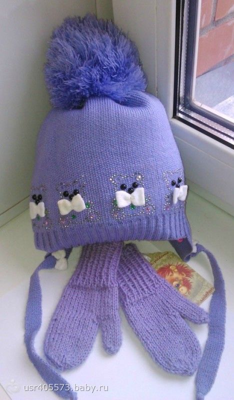 ну и моему пирожку чуток досталось)))под покупную шапочку связались варежки.100%шерсть.размер на 2года.