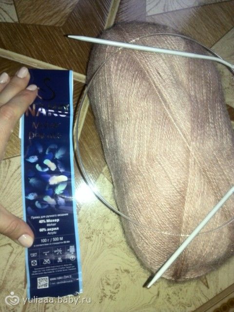 спицы 3,5 вяжу в 2 ниткисостав 62 мохер 38 полиамид в 25 г 250 м
