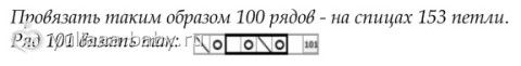 Продолжаем вязать до 100 ряда, это будет изнаночный ряд, в нем делать накид перед последней петлей не надо. На спице будет 152 петли, слева образовалась цепочка из 50 «дырочек»