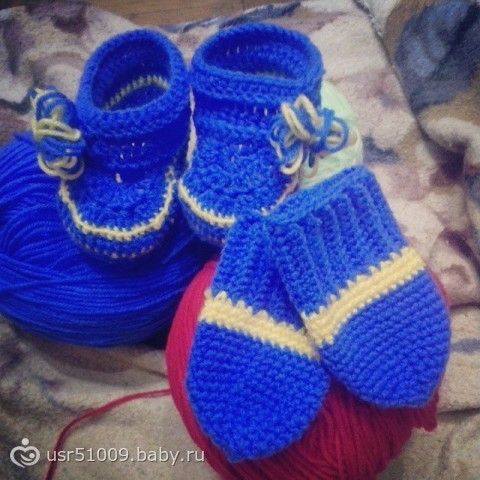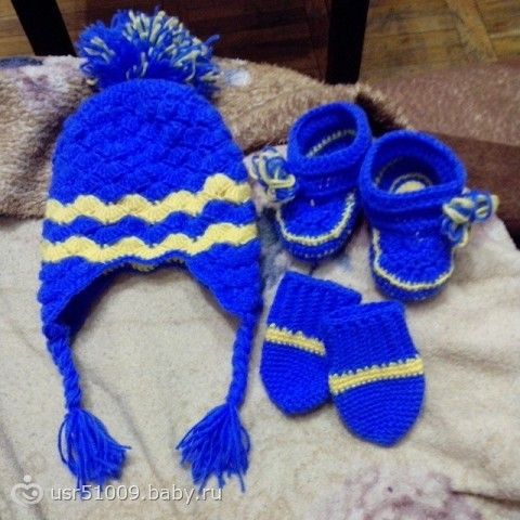 Немного похвастаюсь, раньше вязала только носочки и пинетки, в этот раз решила попробовать связать шапочку и варежки)))воть)))