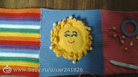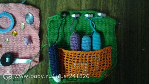 мне все странички нравятся, как всегда все продумано, для малышей и цвета изучает ребенок и на ощупь тканюшки трогает, да еще и поиграть можно