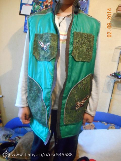 куртку ему на осень и жилет сшила тоже за 300 и 500 р обошлось — изних поолвина стоимости-фурнитура))