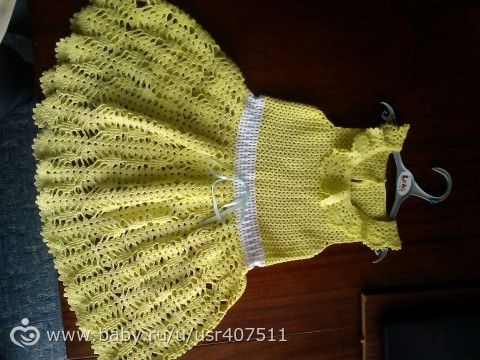 Платье связано крючком. Можно было украсить лентами, но я не люблю всякое такое)