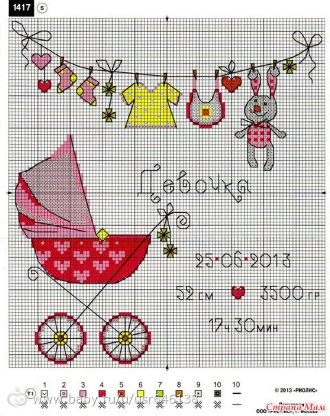 Здравствуйте! Кто из мамочек не хочет порадовать себя отличным подарком — детской метрикой, вот и мне захотелось. Нитки и канва есть, а вот схемы нет. Помогите, может, кто-то такую делал своей малышке,