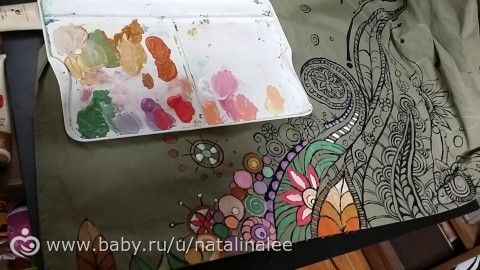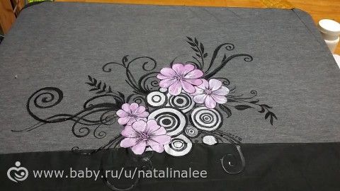 варикнт, через капирку, я просто рядом прототип ложила, рисовала белым карандашем раскроечным, на глаз… и еще свое пририсовывала что фантазия подсказывала… у меня краски просто акриловые не для тканей, стирку пережили благополучно
